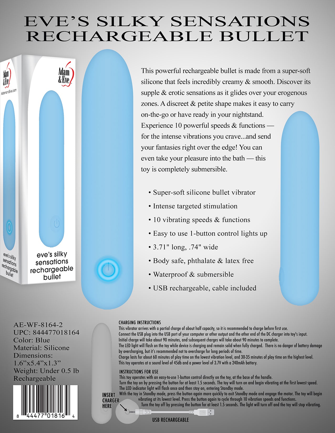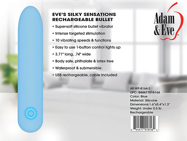 Adam & Eve Eve's Silky Sensations USB Rechargeable Bullet Vibrator Blue 9.4cm