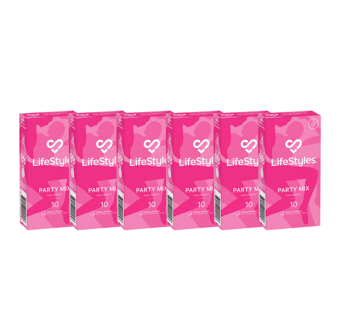 LifeStyles® Party Mix Condoms contain a playful mix of assorted condoms with different features including colours, flavours, and textures.