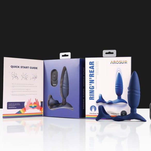 Arosum Ring'n'Rear Dual Thrusting Anal Probe with Cockring and Remote