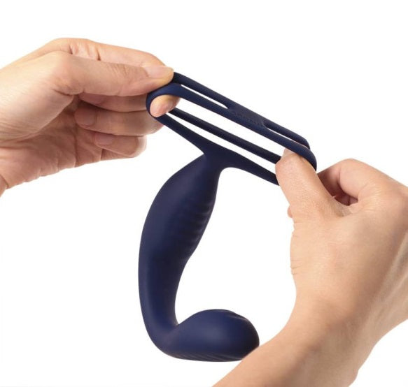 The amazing VibraDuo is a remote controlled vibrating perineum and prostate duo massager with twin cock rings.