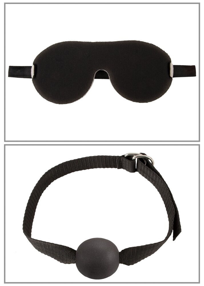 - Ball gag and blindfold included