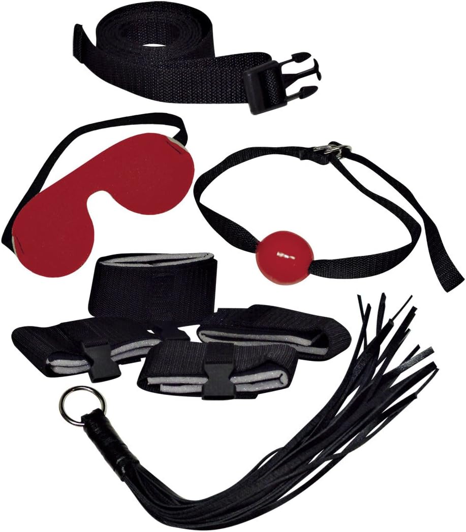 Eight spell-binding, tear-restistant tie-up accessoires in black and red: