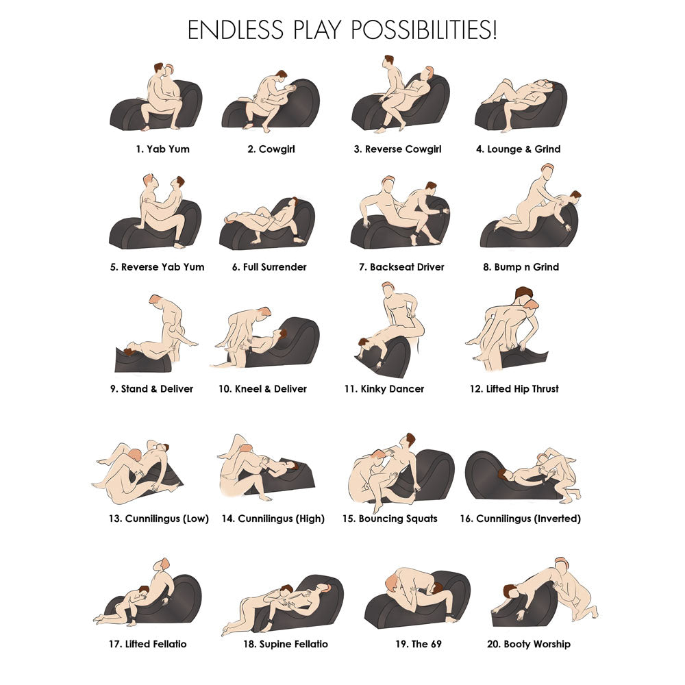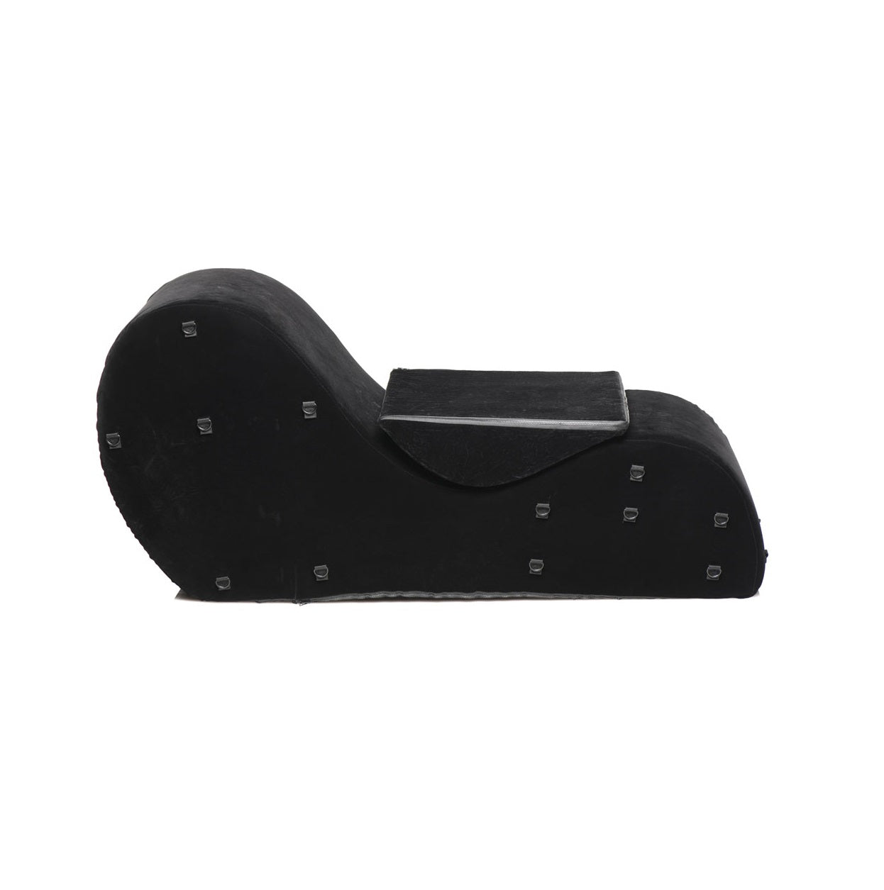 This sexy, comfortable chaise lounge is perfect for adding some spice to your life! Made out of high-density foam, it's easy to move and compact when shipped. This bondage couch opens up a world of possibilities that enable you and your lover to explore countless new sex positions that support your body and theirs! With 26 different nickel-free, metal attachment points along the sides and the bottom you can restrain your partner with cuffs that attach to D-rings. The soft, faux suede outer cover feels exquisite against your bare skin and the foam is protected by a water-resistant inner cover, both of which are machine washable.