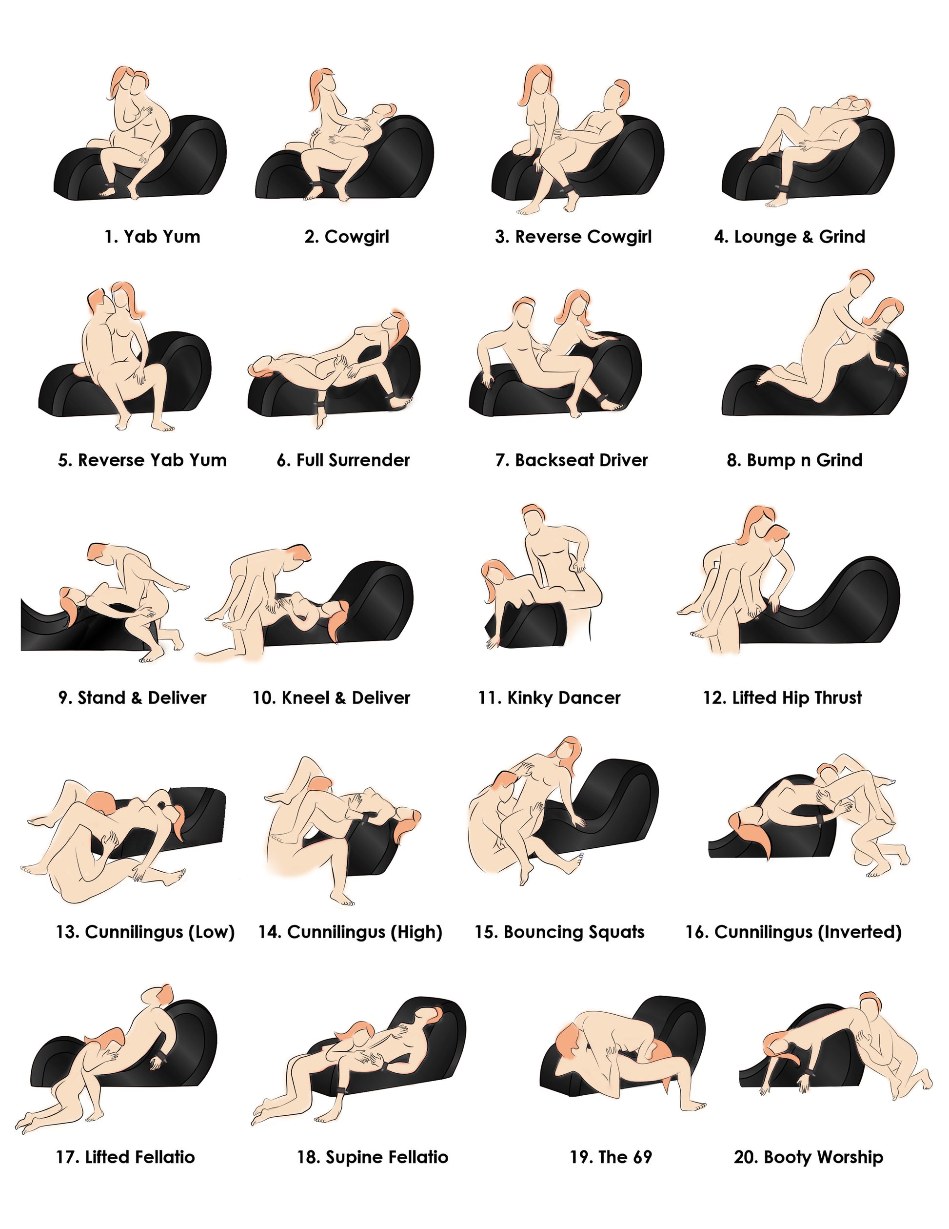After placing wrist and ankle cuffs on them, hook their wrists up above their head and their ankles down below while they're face up. With their legs spread, warm them up with some oral attention between their thighs. Once they're warmed up, reposition them and climb on top! Or turn it into a scene and bring out the vibrators, feather ticklers, whips and floggers! Turn them to face you or put them in doggy! Have them upside down or right side up. Either of you can be high or low on the couch to adjust for different positions that help you both reach orgasmic new heights!