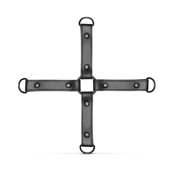 The cuffs are attached to the hogtie with clip closures, allowing you to easily loosen or tighten them. The durable hogtie is made of sturdy faux leather and metal.