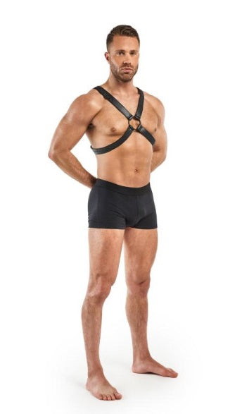Bring all your wildest fantasies to life with this kinky harness. Made of durable faux leather and generously adjustable for a good fit.