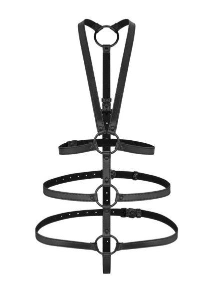 Bring all your wildest fantasies to life with this kinky harness! Made of durable faux leather and generously adjustable for a perfect fit.