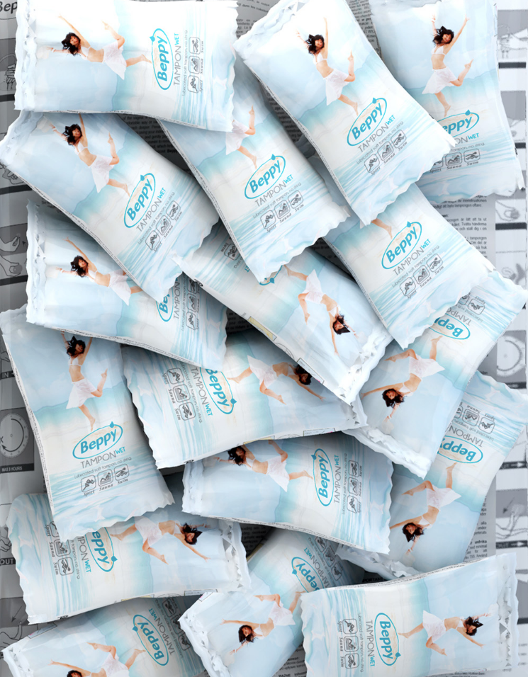 Beppy Wet contains a special, aseptic moistening agent, Lactagel, for very easy positioning. Beppy Wet is pulled out by way of a handy loop. Easy as can be!