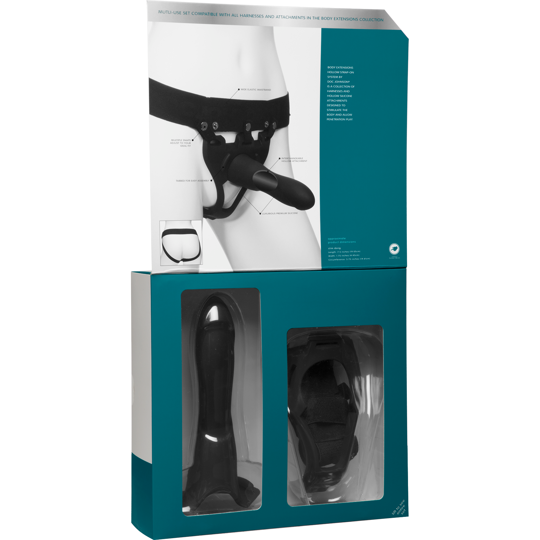 BE anything you want to be. The Body Extensions Hollow Strap On System by Doc Johnson is a unisex collection of harnesses and hollow silicone attachments designed to stimulate the body and allow penetration play regardless of the type or function of the wearer’s anatomy.