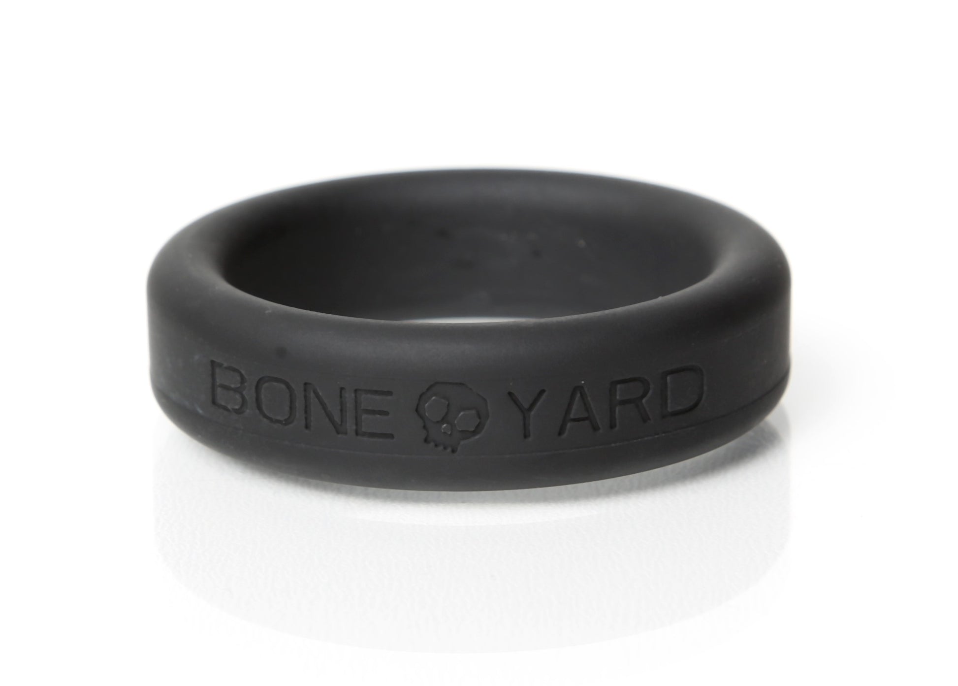 Boneyard Silicone Ring 1.4″ (35mm) Black These must-have man toys are designed with superior materials and production thus increasing both comfort and lifespan. The powerful and iconic Boneyard-branded design has a sleek silicone finish and features a superior and durable 3x-stretch. The soft medical grade 100% silicone rings and non-roll design provide a snug fit that both the wearer and his playmates will appreciate. Unique to themselves, these rings synergize with the wearer, providing endless comfort when wearing under your jeans. You can be assured that they will withstand the punishment of your longest play sessions time and time again.