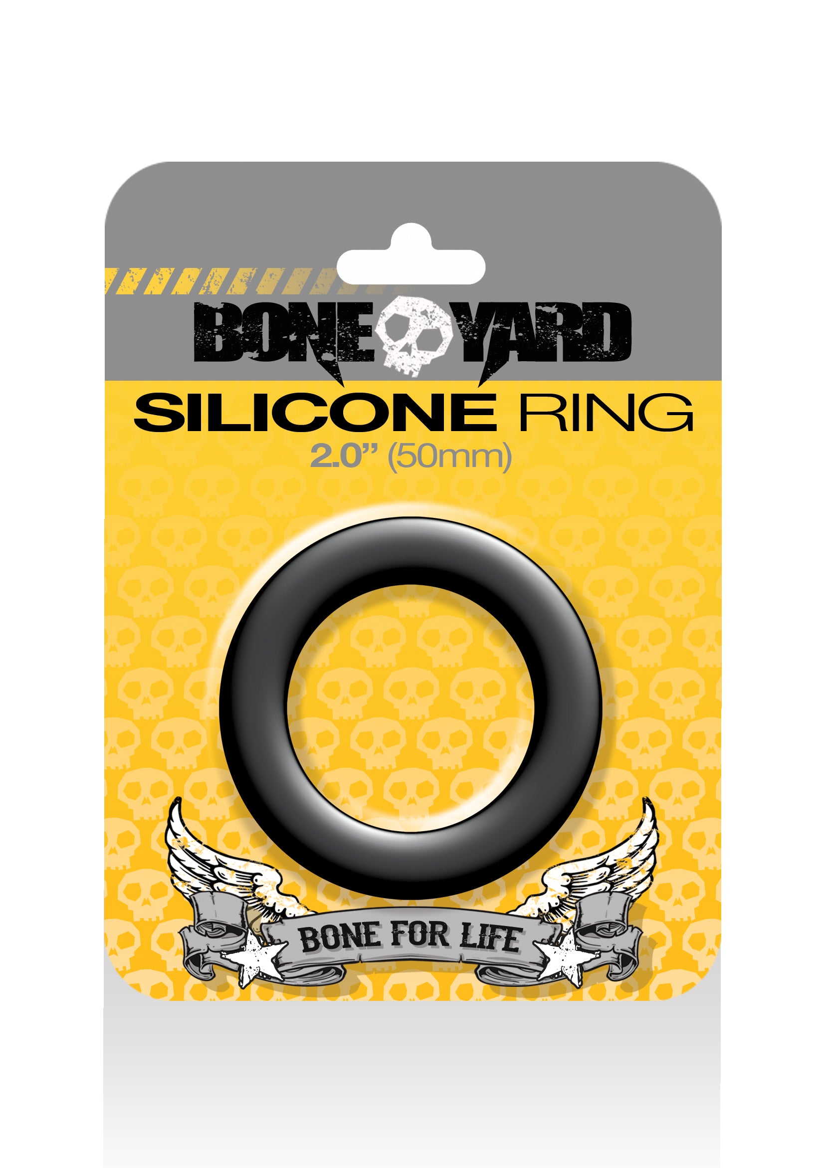 Boneyard Silicone Ring 2.0″ (50mm) Black These must-have man toys are designed with superior materials and production thus increasing both comfort and lifespan. The powerful and iconic Boneyard-branded design has a sleek silicone finish and features a superior and durable 3x-stretch. The soft medical grade 100% silicone rings and non-roll design provide a snug fit that both the wearer and his playmates will appreciate. Unique to themselves, these rings synergize with the wearer, providing endless comfort when wearing under your jeans. You can be assured that they will withstand the punishment of your longest play sessions time and time again.