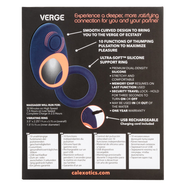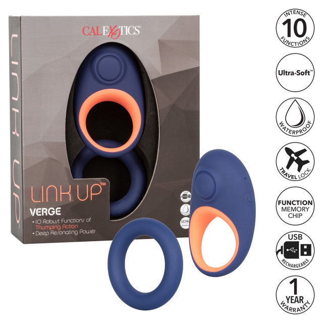 Experience a deeper, more satisfying connection for you and your partner with the powerful Link Up™ Verge. The dual stimulating ring delivers intense pleasure with 10 powerful thumping functions, added Ultra-Soft™ support ring and sensually contoured stimulator.