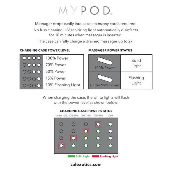 The MyPod™ is redefining pleasure with technology, convenience and mobility at its core. This start-of-the-art massager provides an unparalleled pleasure experience whenever and wherever you desire. With a unique charging case, built in UV sanitizing light and powerful vibrations, the MyPod™ bullet is the future of travel-ready pleasure.