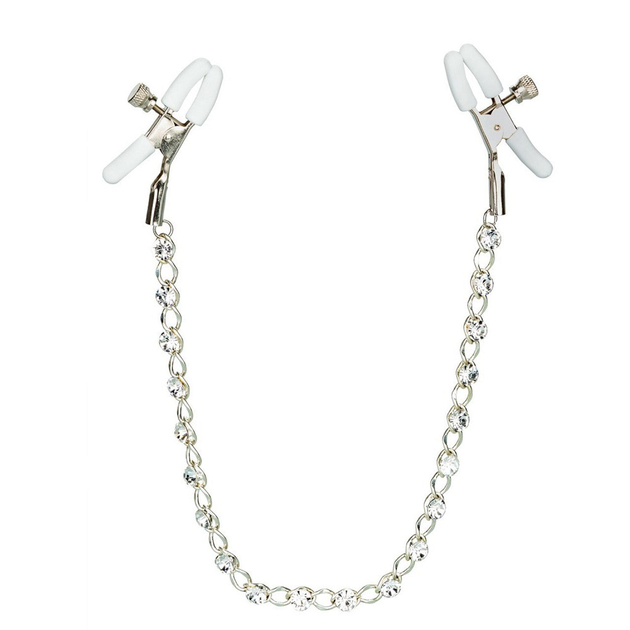 Push sensation to the next level and enjoy teasing nipple play with the Nipple Play Crystal Chain Nipple Clamps. Explore elevated sensation with the 2 fully adjustable nipple clamps, teasing chain and sparkling crystals. Reach new levels of playful pleasure with the adjustable clamps. Clamp the naughty clasps to your body and enjoy every rush of pain and pleasure.