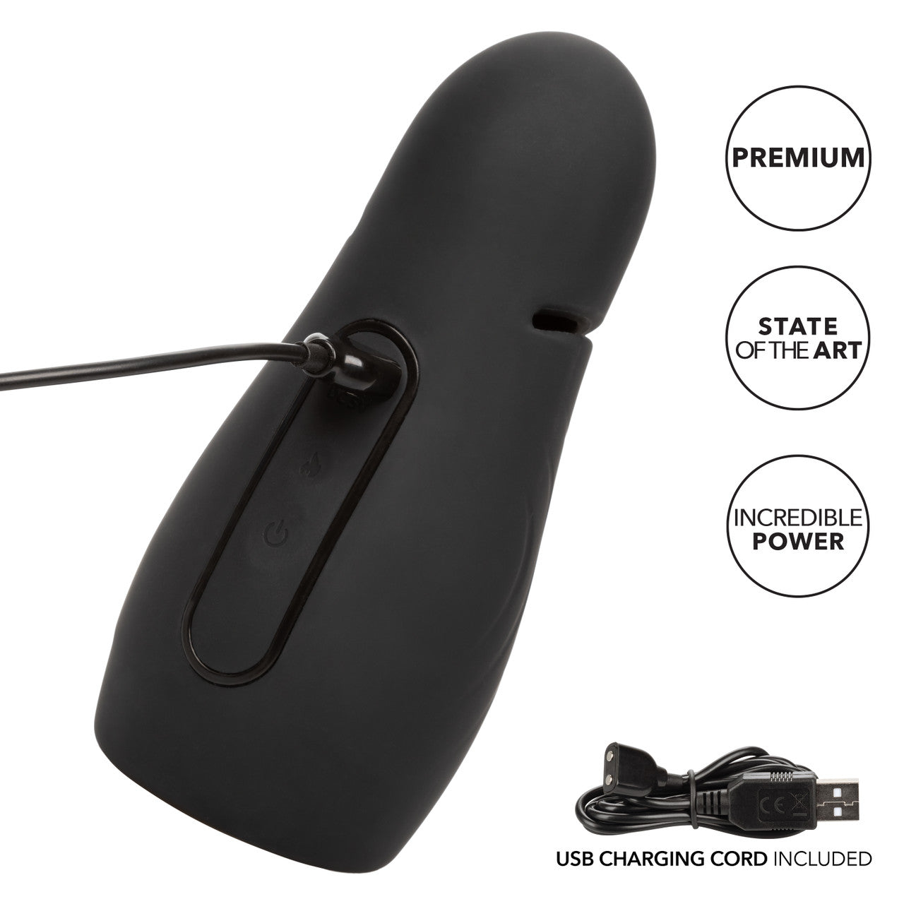 This handheld vibration machine will boost your pleasure with the 3 silicone support rings, included for your stimulation, and the state-of-the-art memory chip will resume on the last function you used, ensuring a quick, no-hassle start and end to your late night or early morning sessions. The included travel lock for the Optimum Power® Elite Pro Stroker ensures no embarrassing TSA moments, with reactivation requiring a 3-second push.