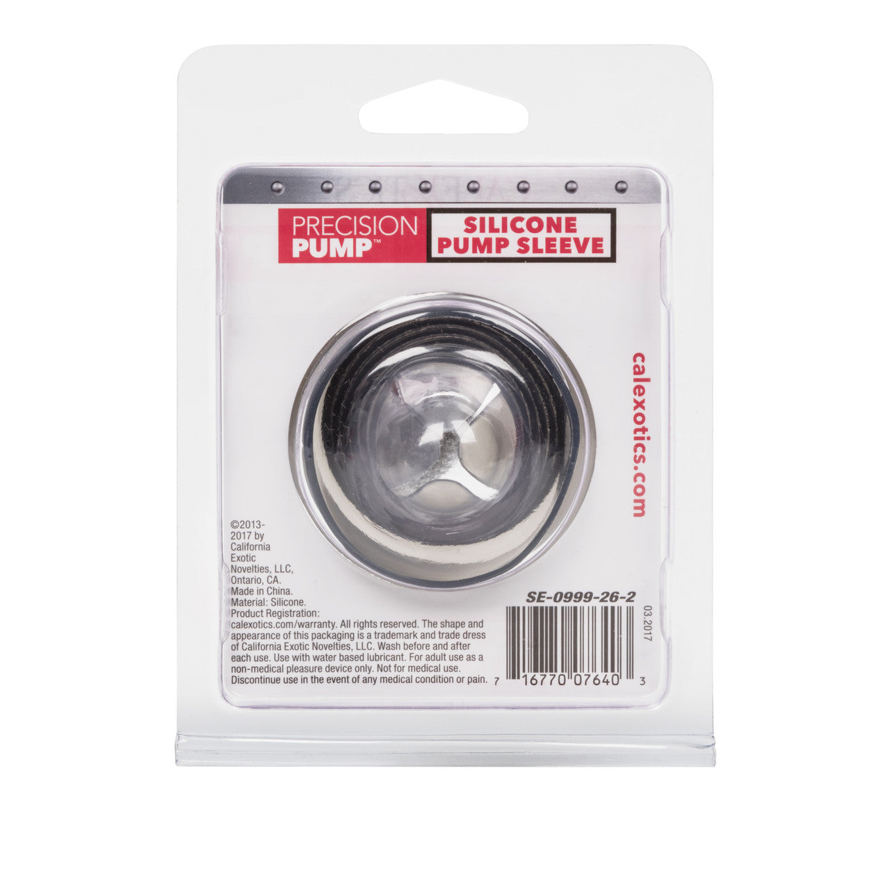 Take your pumping experience to the next level with the insanely comfortable Precision Pump Silicone Pump Sleeve. The Precision Pump Silicone Pump Sleeve fits over the cylinder of most pump sizes to cushion and protect your rod. You’ll love the soft and cushy feel against your erection as you pump your penis to its maximum size! The sleeve features a ribbed interior for added pleasure as you pump. Who says that penis training has to be all about work? The sleeve keeps a gentle but firm grasp on both the cylinder and your manhood to give you a superior airtight seal. Keeping that seal impenetrable is crucial to getting the best results to thrill you and your lover. This sleeve measures 2.25 inches long by 2.5 inches wide. It fits cylinders up to 3 inches in diameter, so try it out on the pump of your choice.