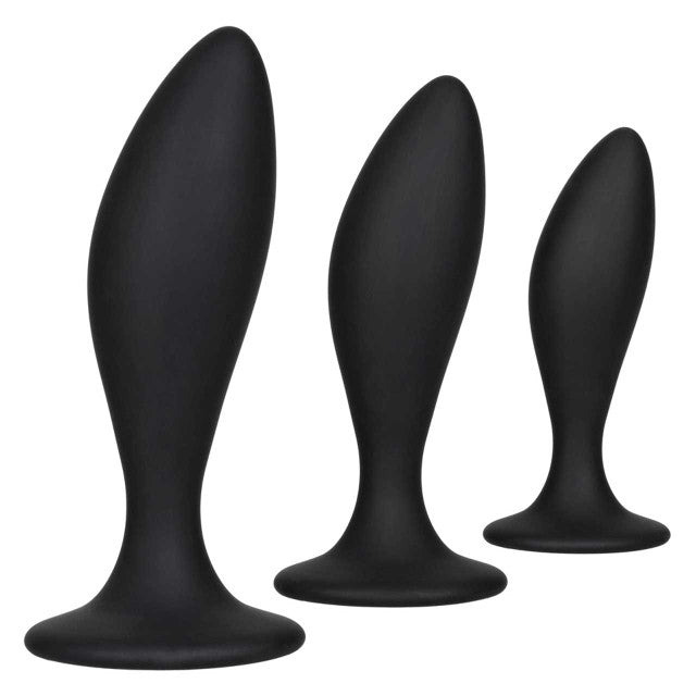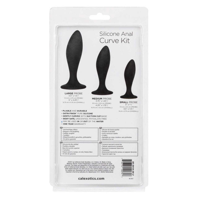 Open yourself up to a world of thrilling anal pleasure with the Silicone Anal Curve Kit. Indulge in knee-trembling pleasure with the set of 3 graduated sizes of gently curved anal plugs with suction cup bases.
