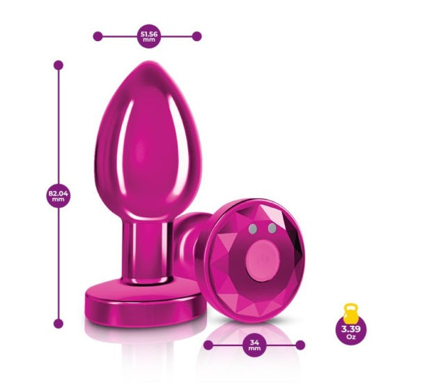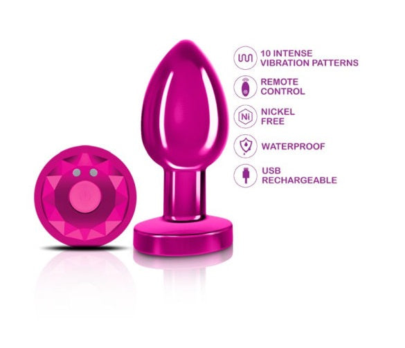 Cheeky Charms - Rechargeable Vibrating Metal Butt Plug with Remote Control -Pink - Medium