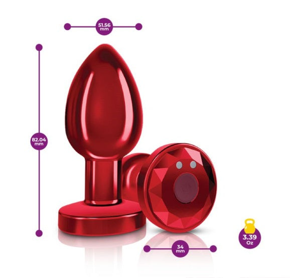 Cheeky Charms Rechargeable Vibrating Metal Butt Plug with Remote Control -Red- Medium