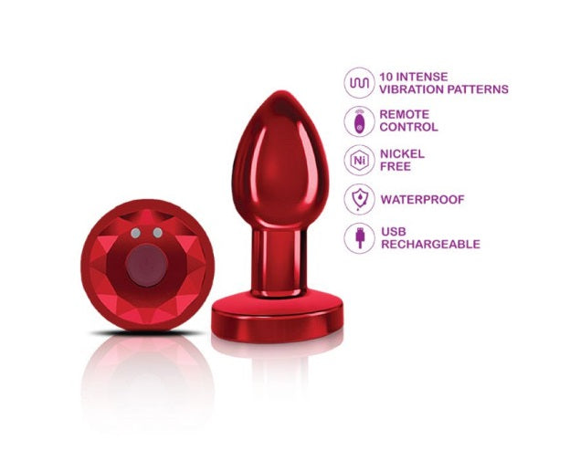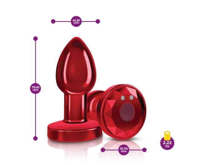 Cheeky Charms Rechargeable Vibrating Metal Butt Plug with Remote Control -Red- Small