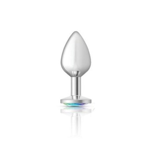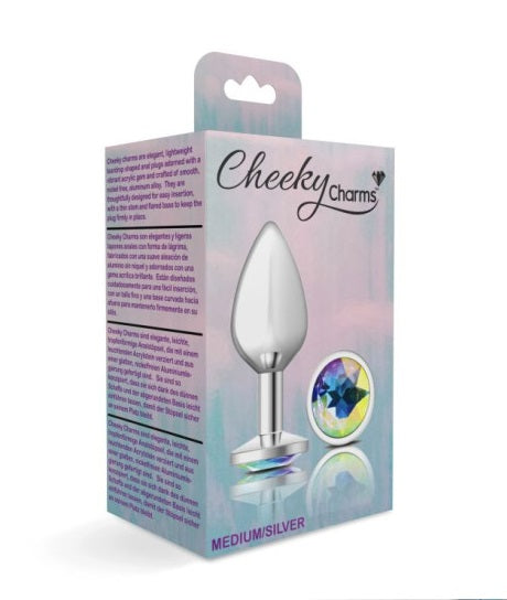 Cheeky Charms Silver Round Butt Plug w Clear Iridescent Jewel Medium
