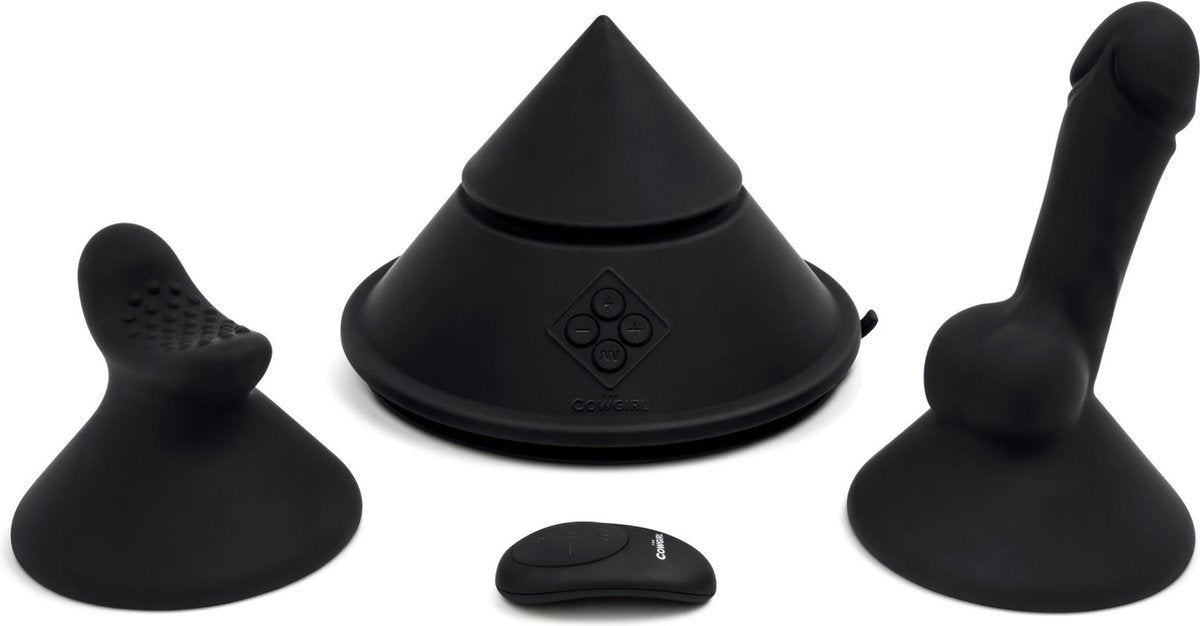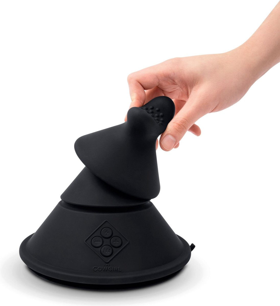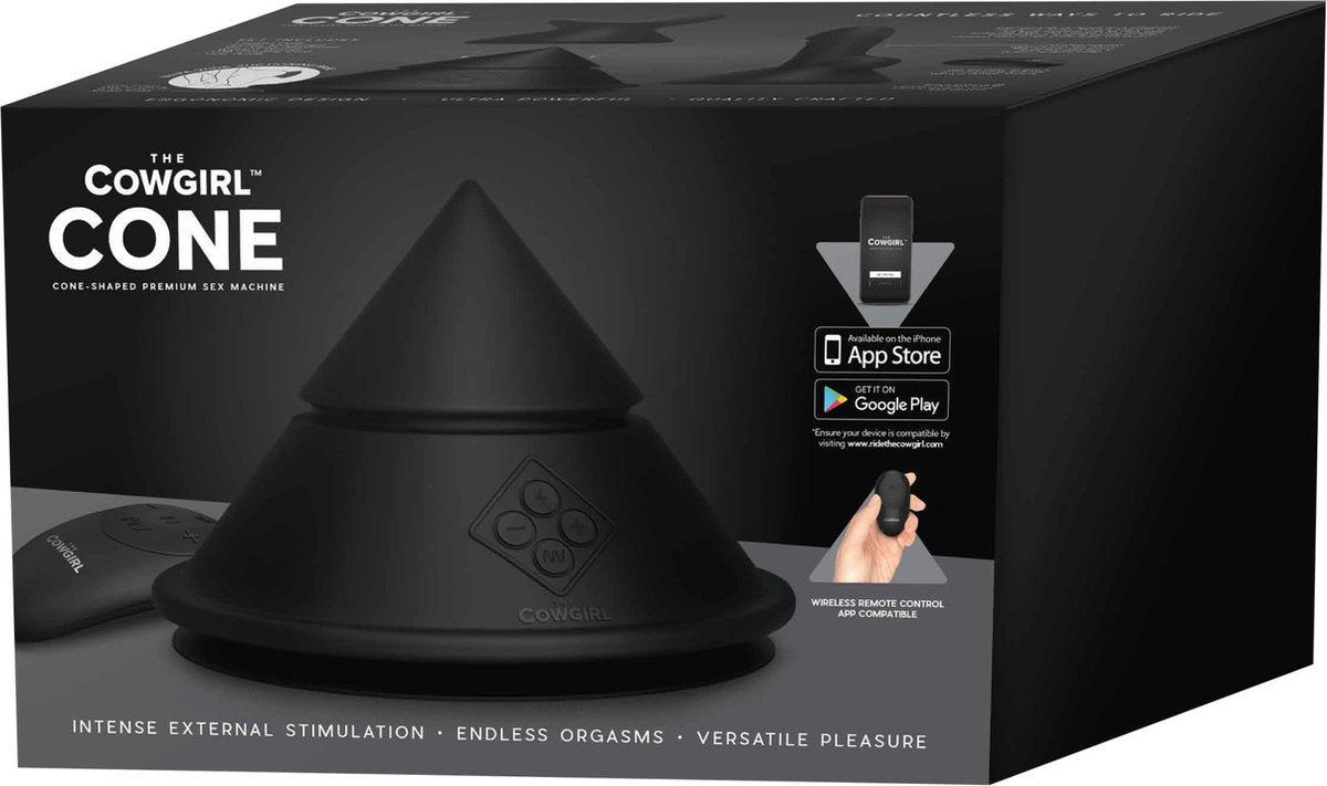Ergonomically designed for a sensational ride, The Cowgirl Cone provides body-quaking, external stimulation with countless ways to stimulate in any angle you desire. Lay-on, rub, or lean into full-body pleasure with an ultra-wide, suctioning base. With 2 included attachments, 20 vibration modes, and 10 intensities, you'll never have the same rodeo twice. An included remote control or Bluetooth app remote lets you take the reigns on your pleasure, or hand over control to your partner from any distance and have the ride of your life!