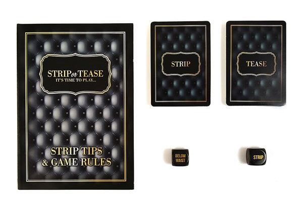 "Unleash the inner God and Goddess in each other with the erotically charged game of Strip or tease. With a booklet to show him and her the art of Stripping and Teasing how to set the scene the right music clothing lighting etc Strip or Tease will help you perfect the art of undressing erotically and sexily tantalising each other with thoughts of what may be to come... Let the game strip you of your inhibitions and tease each other with the show of a lifetime. It's time to play...