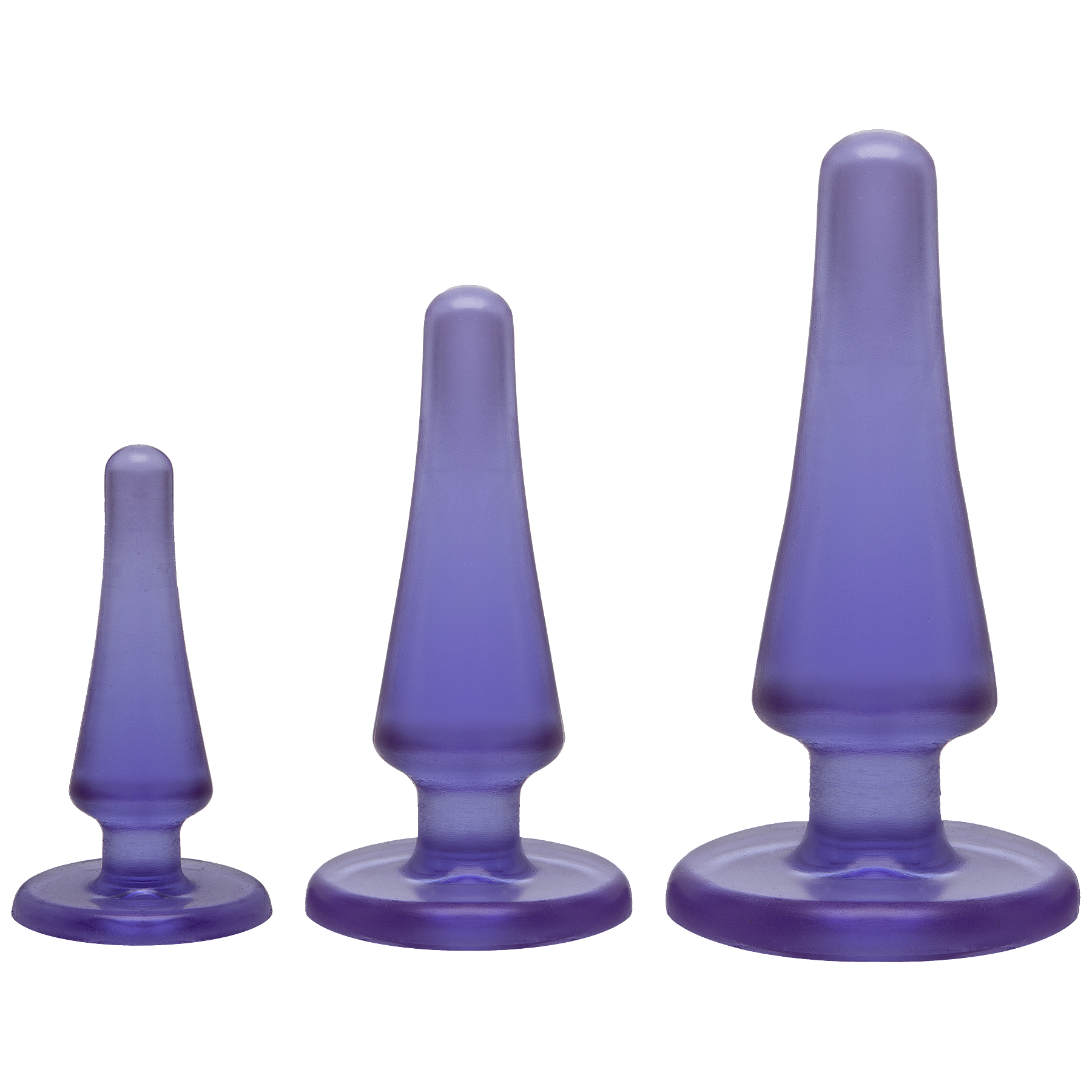 Three classic plugs in smooth, body safe material sized at one inch intervals offer progressive levels of sensation while flared bases and a firm yet flexible feel ensure safe and versatile fun.