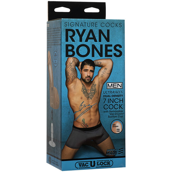 Made from Doc Johnsons Dual Density UltraSkyn material, the Ryan Bones Signature Cocks Dildo is molded directly from Porn Star Ryan Bones penis, featuring lifelike details. The Ryan Bones dildo measure a total length of 7.25 inches (5.5 inches insertable) with a width of 2 inches (6 inch circumference) and comes with a removable Vac-U-Lock Suction Cup base. The dual-density, firm on the inside, soft on the outside UltraSkyn gives the dildo a very lifelike feel and look. Made in the USA.