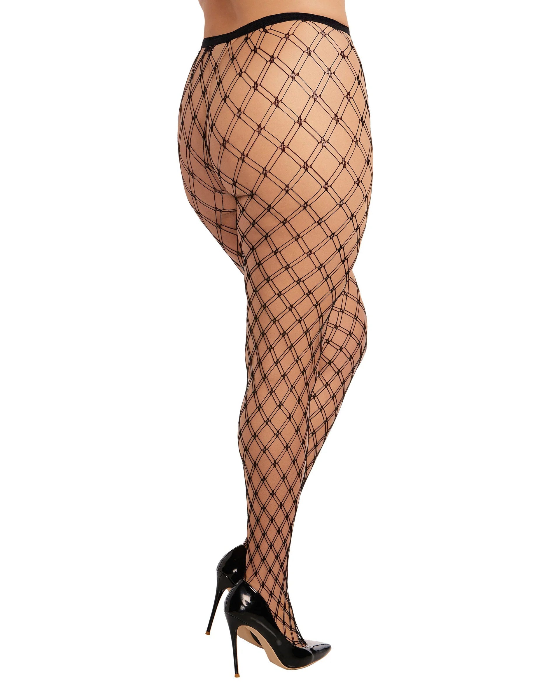 Dreamgirl Plus Size Double Knitted Fence Net Pantyhose Black Size OSX