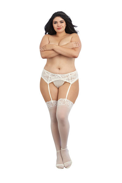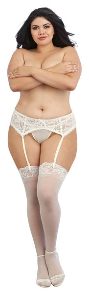Dreamgirl Plus Size Lace Top Sheer Thigh High White Size OSQ