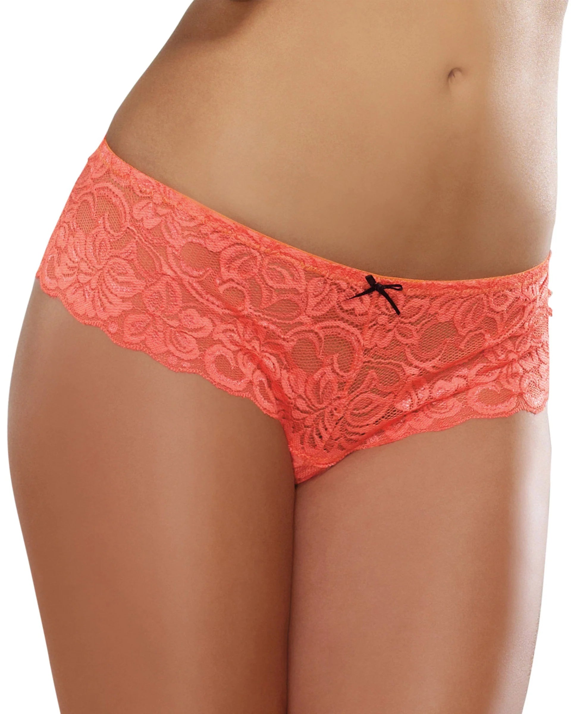 Dreamgirl Satin Bow Crotchless Boyshort Coral - Size S/M/L