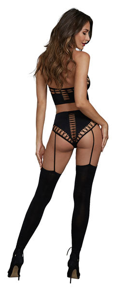 Dreamgirl Seamless Bralette and Waist High Garter Panty Black One Size OS