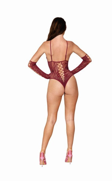 Dreamgirl Teddy w Gloves Burgundy Size OS