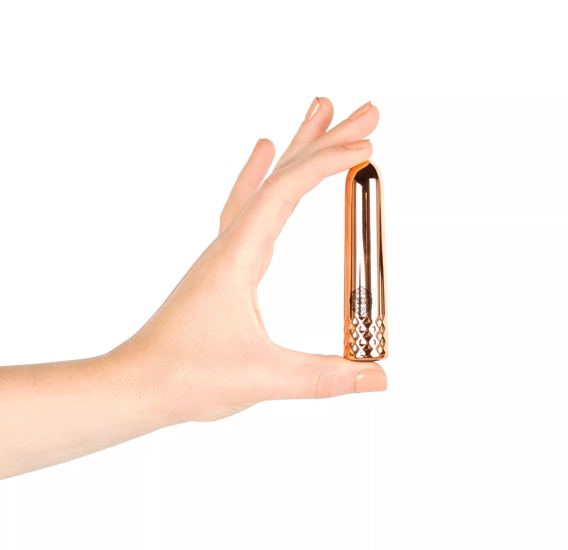 This mini vibrator from Rosy Gold is so compact that the little wonder fits in your pocket. From now on, you always have your favorite toy at hand. The vibrator has ten vibration settings and can be operated with the on/off button. It can easily be charged with the included charging cable. There is a charging point at the bottom of the mini vibrator. The material feels smooth and is easy to clean with toy cleaner.