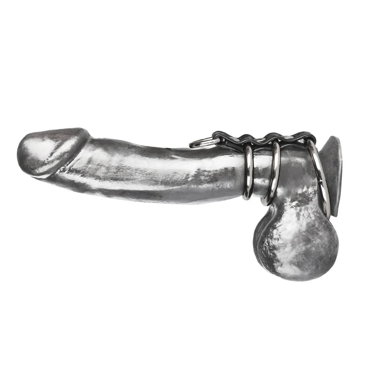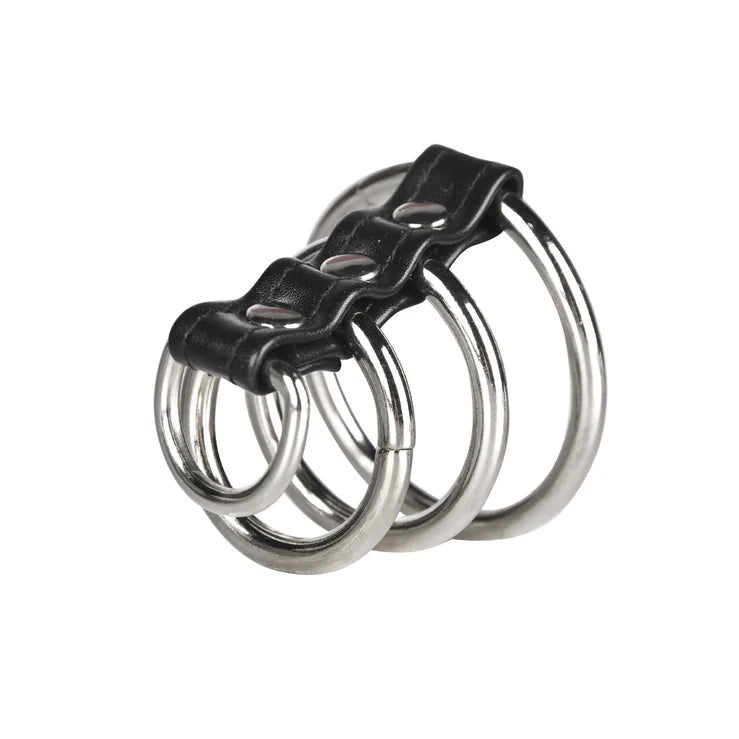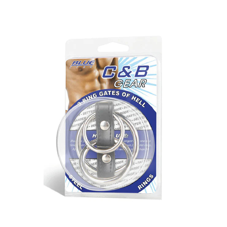 Say goodbye to boring BDSM play with the 3 Ring Gates Of Hell With Lead! This unique design takes your BDSM game to the next level, with three steel rings attached by a single strap – perfect for putting your partner's penis in purgatory. Featuring a D-Ring for any leash, these Gates of Hell give you creative control over your pleasure. Now your BDSM play can be hotter than (Hell)!