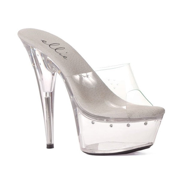 Ellies Shoes | Slip On Rhinestone Platform Clear 6" - Size 7, 8, 9