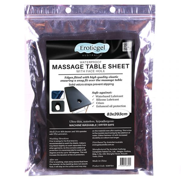 Eroticgel Black Waterproof Massage Table Fitted Sheet w Face Insert 83 x 203cm