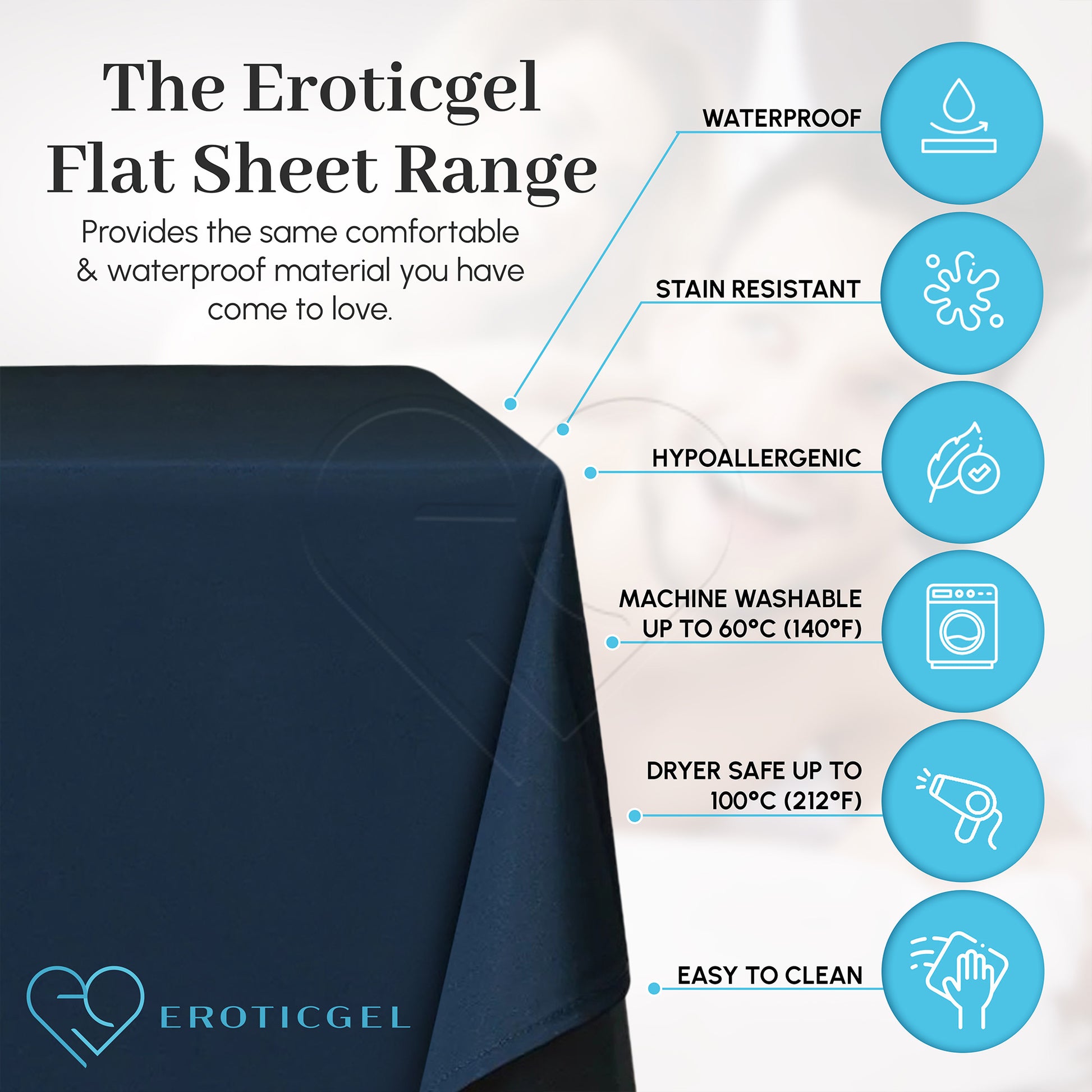 We understand that not only the bed needs protection and that versatility is essential. For this reason, we created the Drop Sheet and Play Sheet. Giving a choice of either 1.5m2 or 2m2 the Eroticgel Flat Sheet range provides the same comfortable and waterproof material you have come to love. Either place it on the floor, on the sofa, or sling it has many uses.