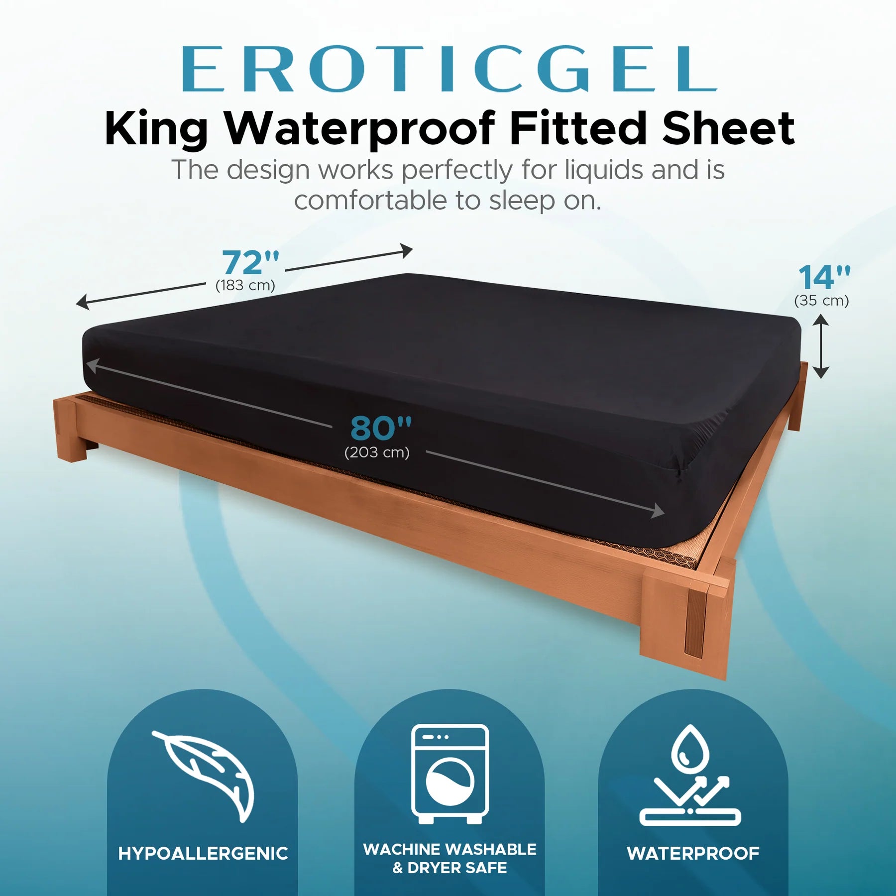 Eroticgel KING Waterproof Fitted Sheet 183cm x 203cm + 35cm