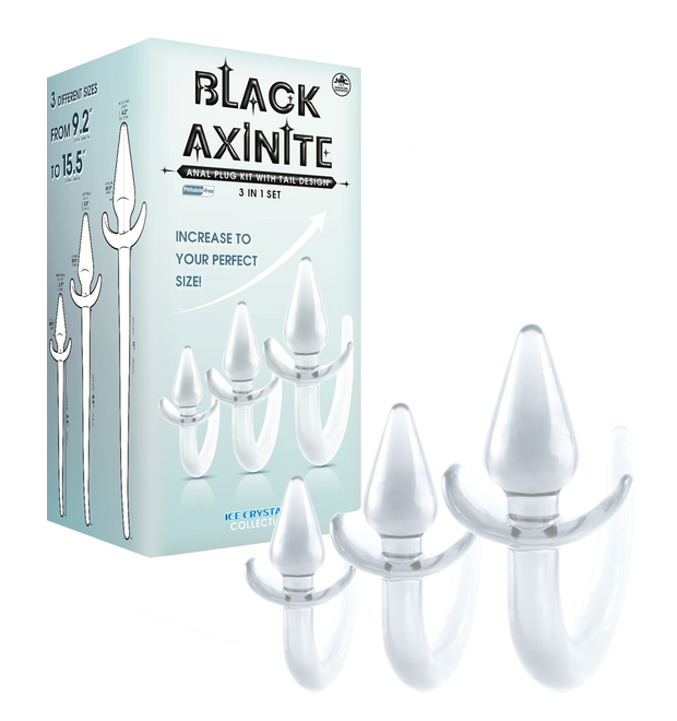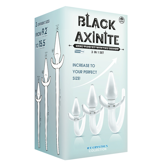 Excellent Power Black Axinite - 3 In 1 Anal Plug Kit With Tail (Clear)