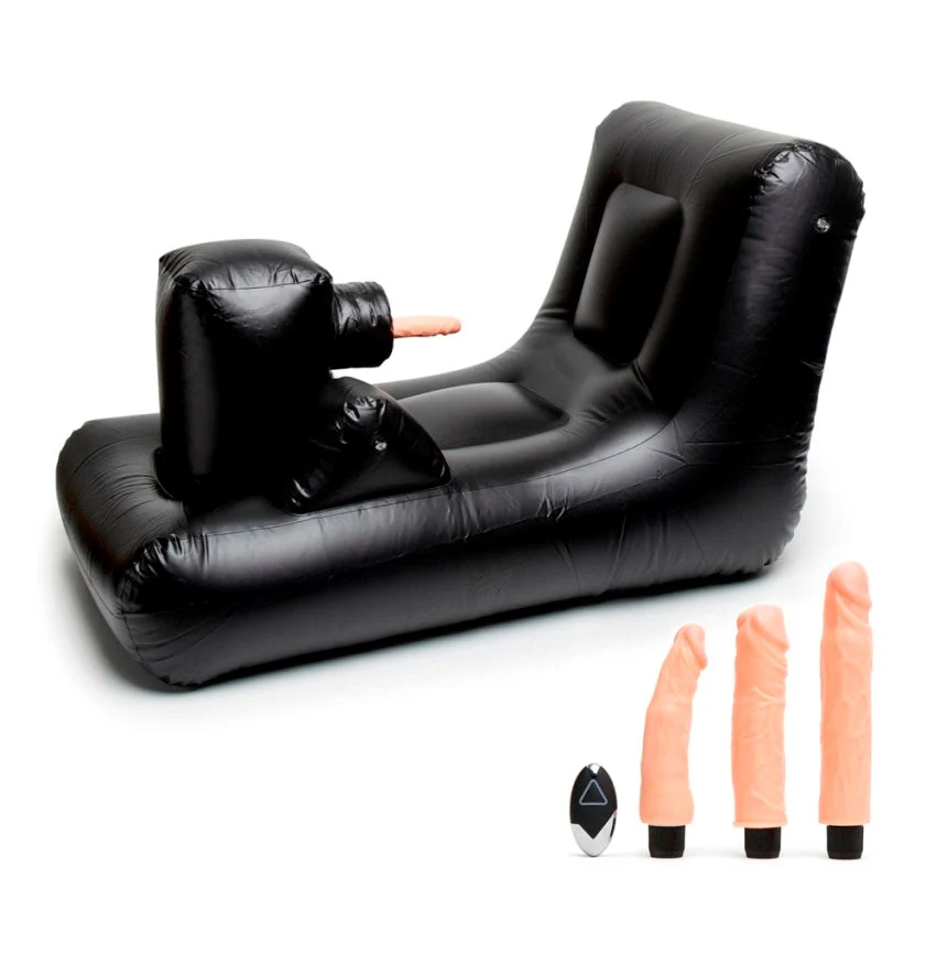 The Inflatable lounge features 3 thrusting speeds controlled via the wireless remote control. Choose from three lifelike vibrator attachments to use, 6 inches curved realistic vibrator, 6.75 inches girthy realistic vibrator, and 8 inches realistic vibrator.