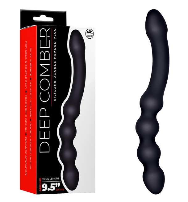 Excellent Power Deep Comber Silicone Ribbed Double Headed Plug (Black)