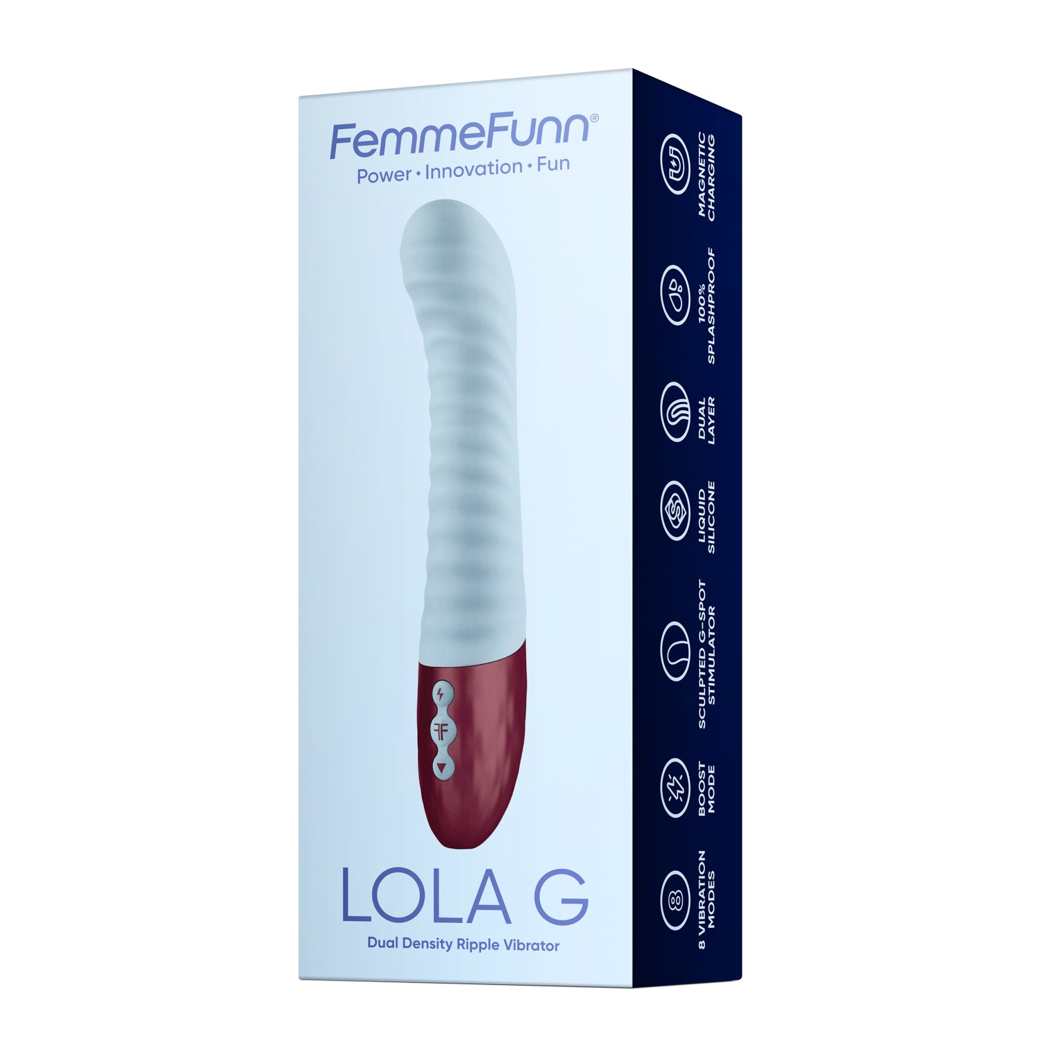 Designed with power in mind, Lola G fills up your atmosphere with its soft, liquid silicone body, firm core, and wavy texture. Flow through 8 vibration modes and take command of your journey, especially with the added Boost Mode that will bring you new waves of pleasure. Sculpted with a bulbed g-spot stimulator on the tip, you'll be able to reach new heights of satisfaction, especially with it's 6 inch insertable length that will rub you in all the right ways.