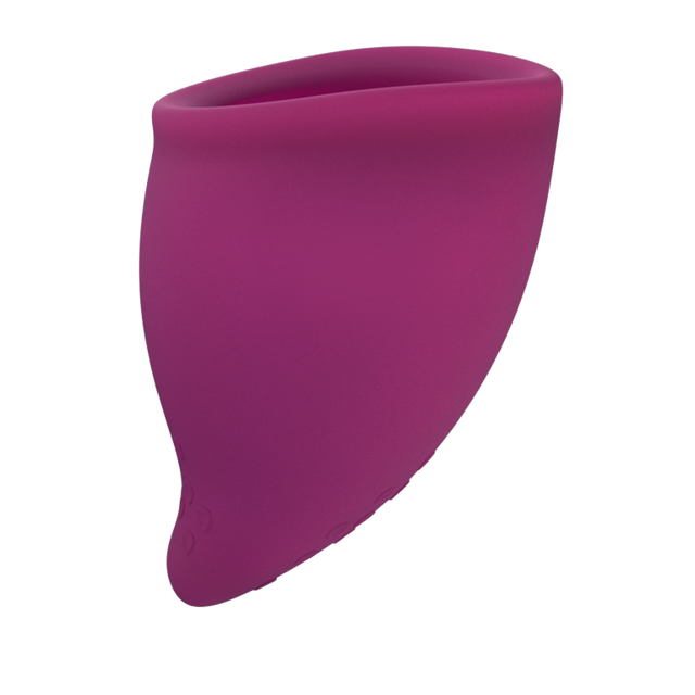 The FUN CUP is shaped to curve with your body, and the thickness of the silicone varies accordingly. The rim is thicker and firmer, to keep your cup reliably in place. The tapered tip is also firm, for easy adjustment. In the middle, the silicone is softer and thinner than that of other cups, so it conforms to the shape of your body, for maximum comfort.