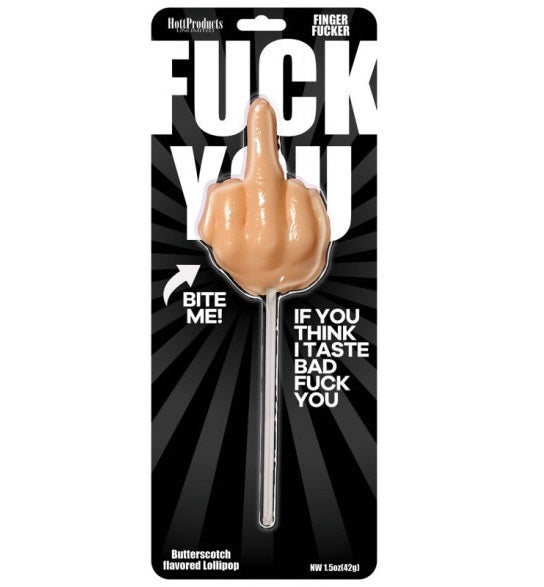Butterscotch flavoured Lollipop. Giving you the "Finger".