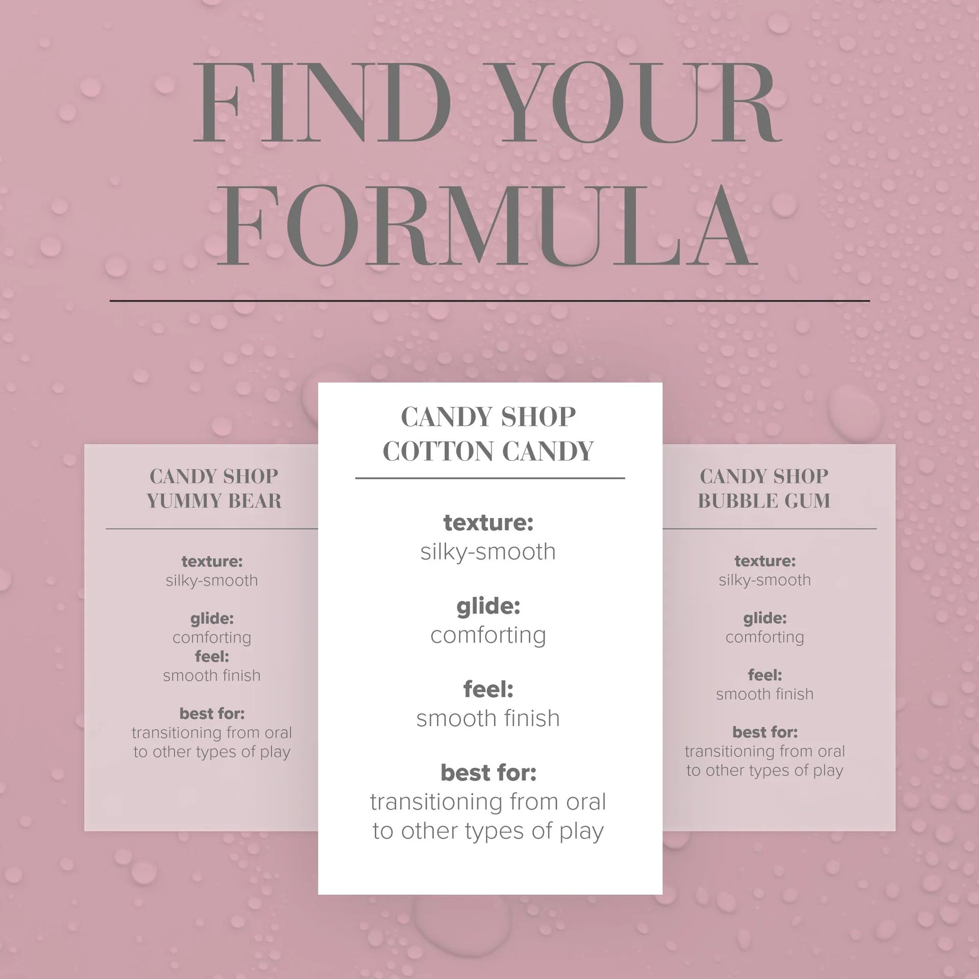 JO Cotton Candy flavored lubricant from the Candy Shop collection lets you enjoy the playful flavors of sweet candies and familiar desserts. Featuring a water-based formula and the flavor of spun sugar, its sensual, comforting glide and silky-smooth feel are perfect for any intimate moment, particularly oral play. And when you’re done, it cleans off easily and leaves your skin feeling soft and moisturized.