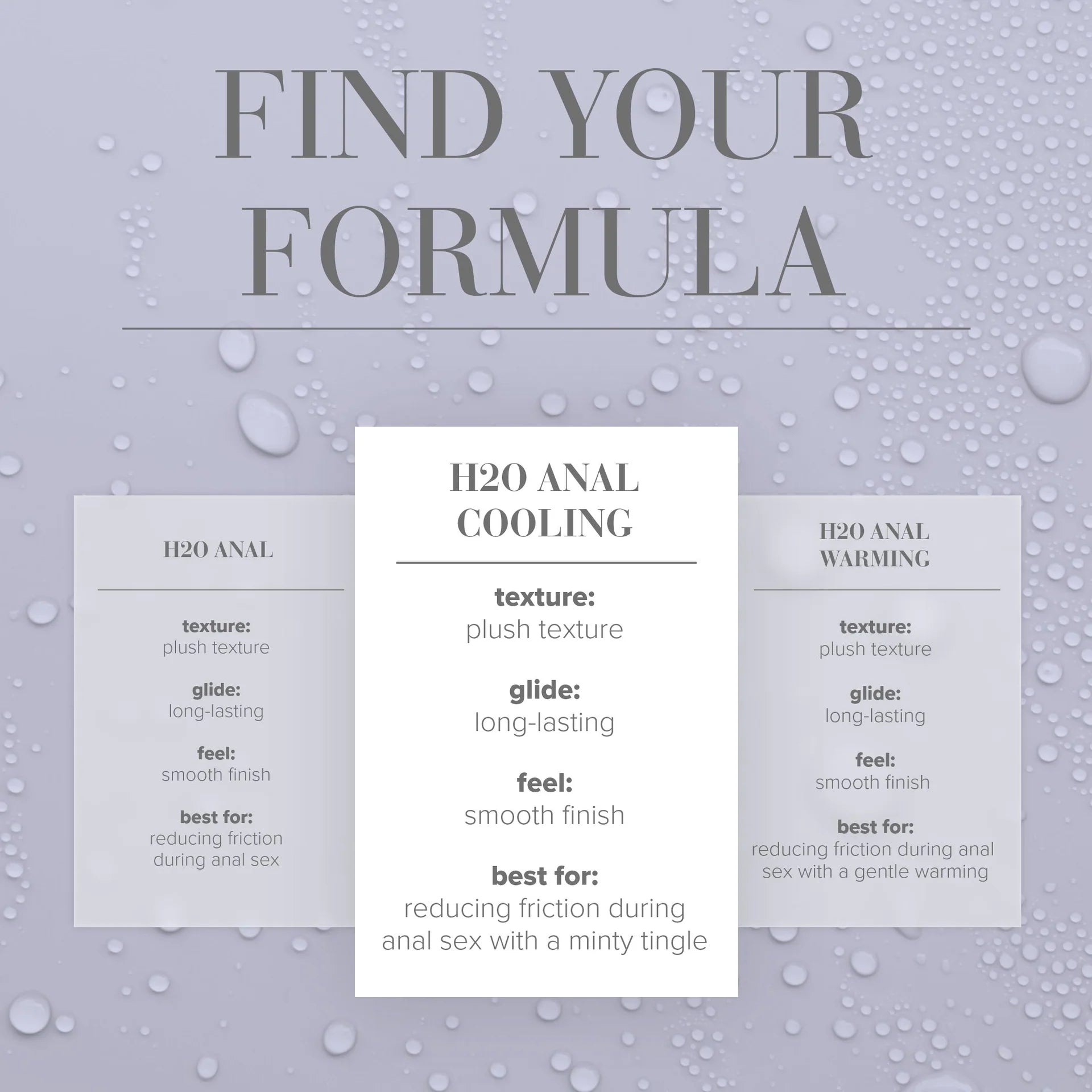 JO H2O with the added sensation of cooling and tingling. Similar feel and viscosity to silicone yet contains NO OIL WAX or SILICONE.