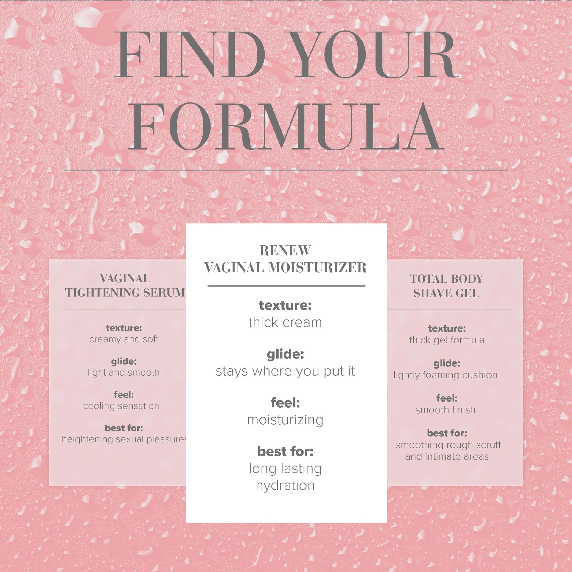 JO® RENEW VAGINAL MOISTURIZER is an intensive moisturizing cream specifically designed for women. The blend of moisturizers including bisabolol, aloe vera, and cucumber fruit provide a gentle daily use formula designed to relieve vaginal dryness. The rich, silky cream offers a drip free application for ease of use day or night.
