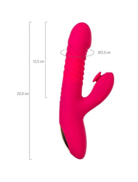 This vibrator has many amazing features. In addition to vibration, it also moves up and down, simulating friction. Also on the clitoral process is a soft embossed pad that vibrates and makes patting movements.